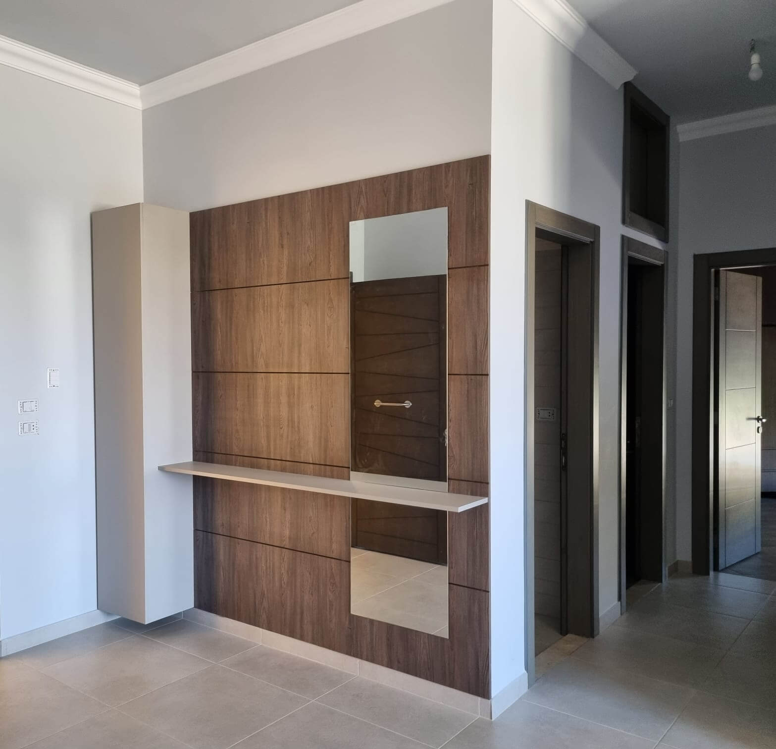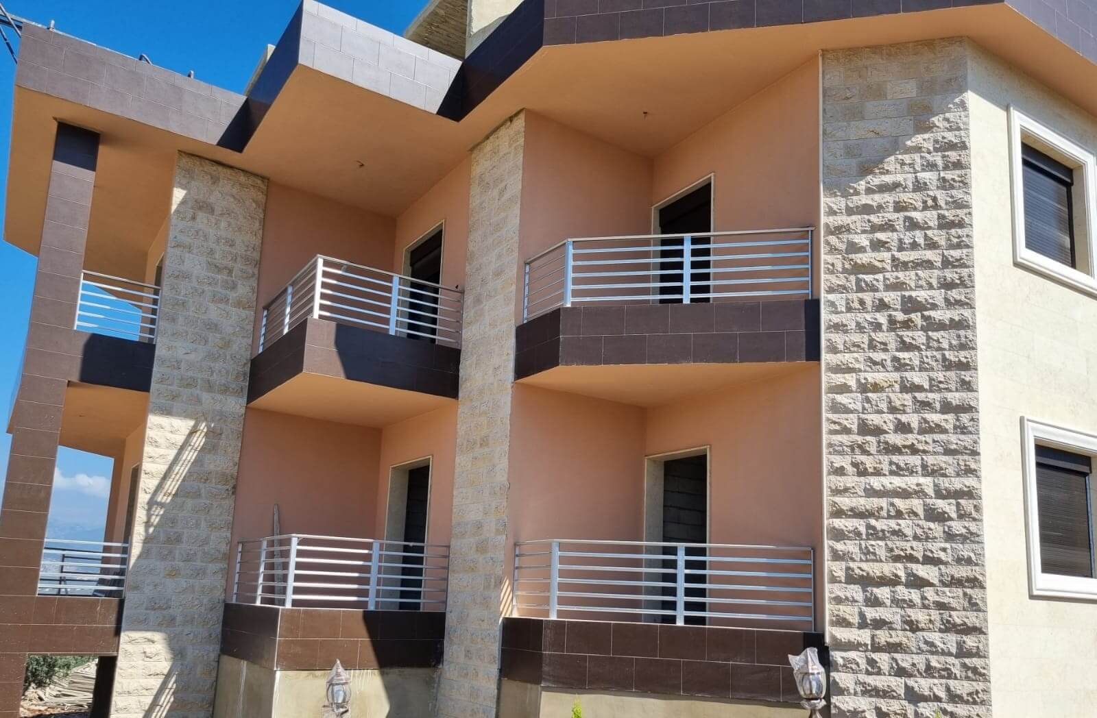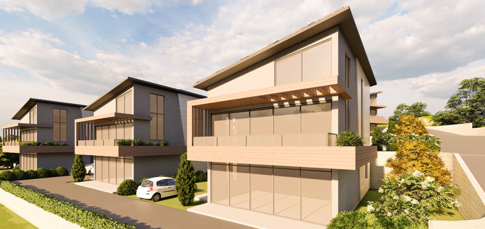 North Hills project consists of One Building with luxurious apartments adjacent to Eight Villas laid descending on a hill to provide for each unit its own uninterrupted view .